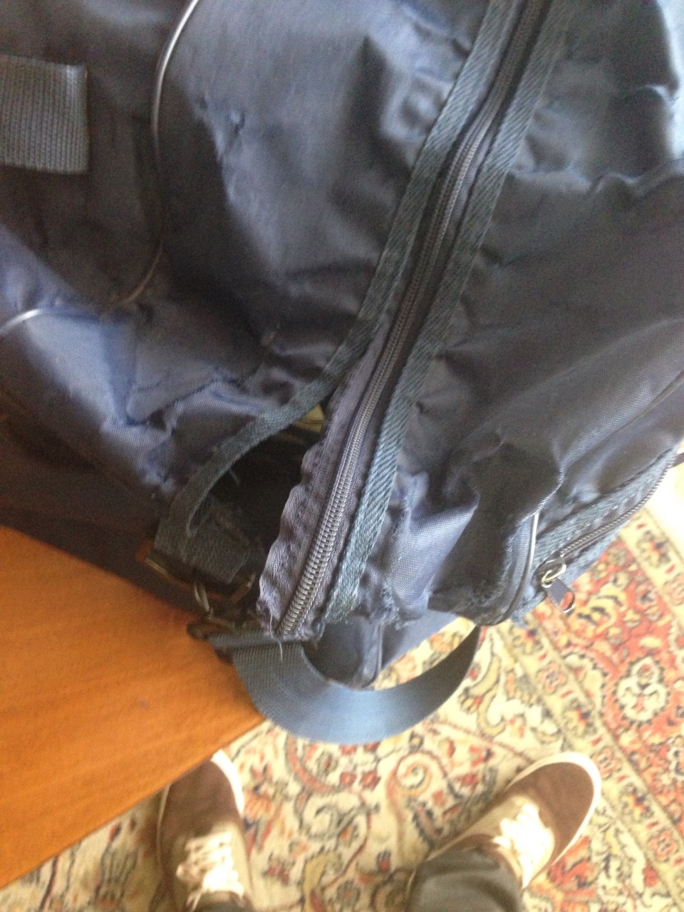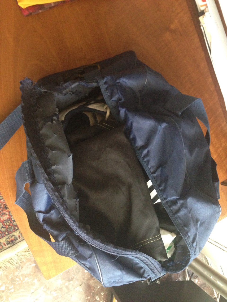Justo el día antes se me rompió mi bolsa del gimnasio DiR, después de 5 años de uso.. des de los 18 yendo al DiR, llegó a su límite y la cremallera saltó de un modo que se me quedó totalmente cerrada, imposible de abrir, adjunto foto: